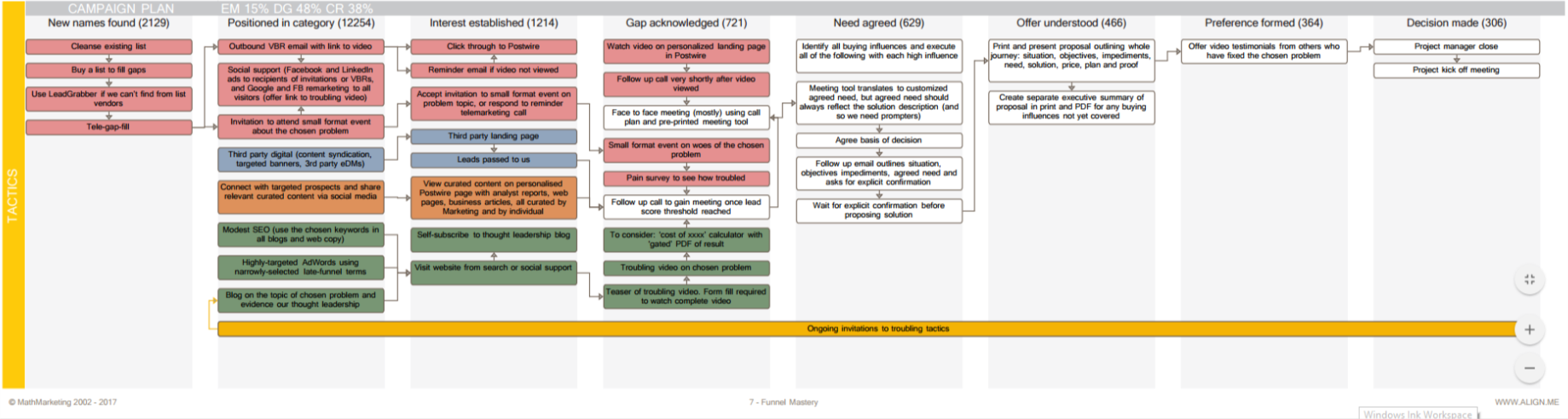 Now the point is that if we see that in a flow we can see we’ve got the tactics for each of those. In some cases, they go all the way through to ‘gap acknowledged’ before becoming somewhat generic. All of those have some kind of campaign for their market, or for that segment. Now they’re kind of generic but hold true for each of those segments.