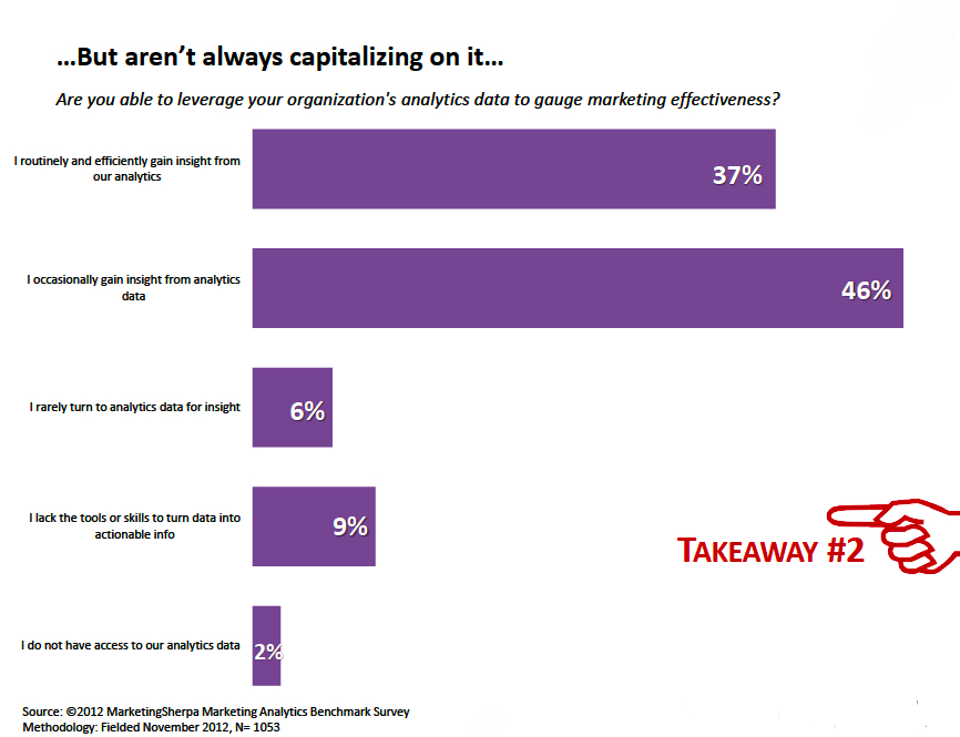 But…and it’s a huge but…only just over a third of marketers are able to use all this beautiful, juicy data to gain any insight into the effectiveness of their marketing and a further 46% of respondents claim they only get occasional insights from their marketing analytics. What a waste! This really sucks!
