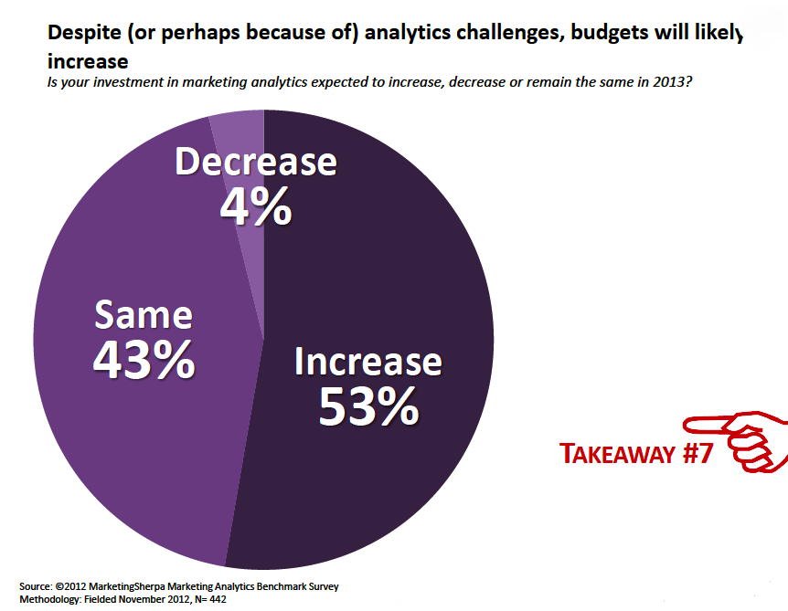 There is a strong determination on behalf of respondents to do something about this parlous state of affairs. Two thirds of respondents plan to act on the data they are collecting to improve marketing performance and 53% are planning to increase spending on analytics.